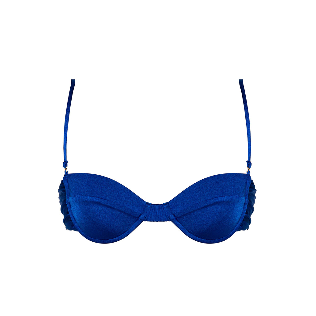 The Rylee in Olympus by Sommer Swim is a balconette bikini top with sculpted underwire cups, ruched front and site detailing and straps that can be removed to transform into a bandeau